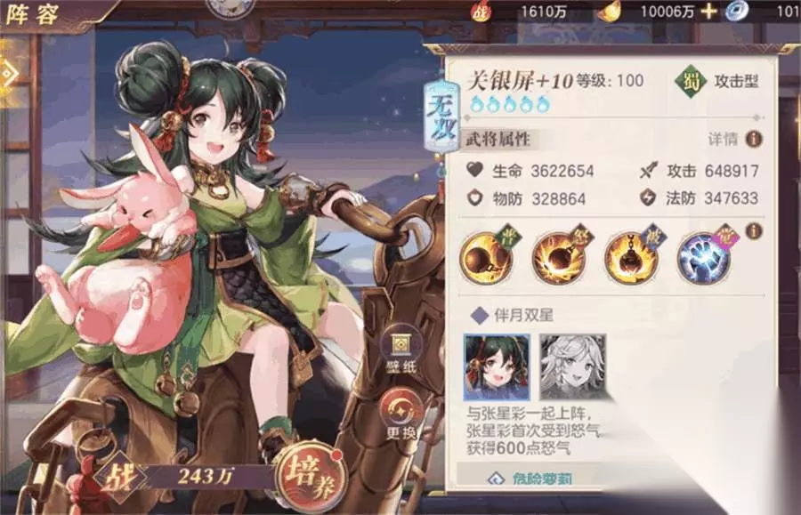 以上就是小编整理的关于《三国志幻想大陆》关银屏潜能加点推荐的相关内容,想了解更多的相关资讯与攻略请关注本站。