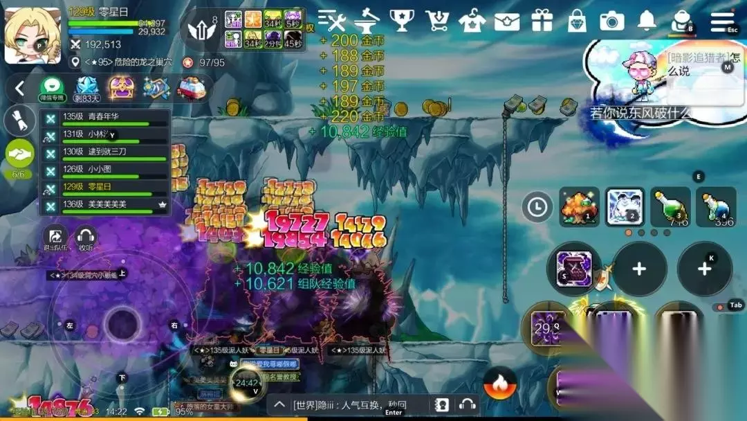3、我们在挂机的时候最好只在技能栏里放入一个AOE技能、一个放置技能、一个群体攻击技能,就尽量放一些都是AOE攻击的技能,然后别放单体攻击的技能,这样也会让你效率更高~这里小编玩的飞侠也是没有放四连标的