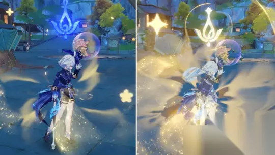 除了看外观,我们还可以根据芙宁娜变换形态时头上的符号和战技样子来判断她是处于荒形态还是芒形态。 技能图标:3个水球为荒形态,歌者为芒形态