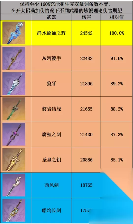 芙宁娜的5命提升了战技等级。6命简而言之,就是解放了芙宁娜配队的群奶位。 满命芙宁娜在开E后会获得6刀强化普攻 在荒形态下: 奶刀。在游戏中,使用6次奶刀攻击后,可以为全队提供17.4秒的高强度治疗,每秒治疗约为3000点生命值。这种治疗效果可以完全满足芙宁娜配队的治疗需求,同时也可以作为队伍的群体治疗手段,帮助队友们抵消芙宁娜的伤害效果。 在芒形态下: 烧血强化刀。6刀的倍率是荒形态近2.5倍,会烧全队角色总计6%的血。但此时战技是前台奶。 这里更推荐打奶刀,以保持高输出的同时也能释放出奶妈的作用,将芙宁娜打造成一个既有高后排输出又能够自己回复能量、给全队增加大量伤害并且全队加强治疗能力的全能插件。 总而言之,满命芙宁娜强度非常高,可以无脑插进大部分队伍,提供非常客观的伤害和加伤以及足够的奶。 3.芙宁娜适配武器、圣遗物分析 武器方面,芙宁娜专用武器优先级并不是很高,不如1、2星级武器高。芙宁娜的专用武器——静水流涌之辉可以提供高额暴击伤害、战技加伤和生命上限增加,是芙宁娜输出最高的武器。考虑到芙宁娜的伙伴碧落之珑不利于没有白术的小伙伴们,因此建议先抽取1、2星级武器来进一步提升。如果没有专用武器,枫丹渔歌武器灰河渡手是芙宁娜的第二选择,因为它提供的战技暴击率和充能非常适合芙宁娜的需求。此外,可以选择5星武器磐岩结绿或圣显之钥(还可以提高队伍元素精通),以及4星武器狼牙和腐殖之剑(已停产)。如果需要过渡期武器,可以尝试使用西风剑或船坞长剑。 根据计算,当命芙宁娜的天赋等级为199时,不同武器的伤害期望如下(5星武器取精1,4星武器取精5):
