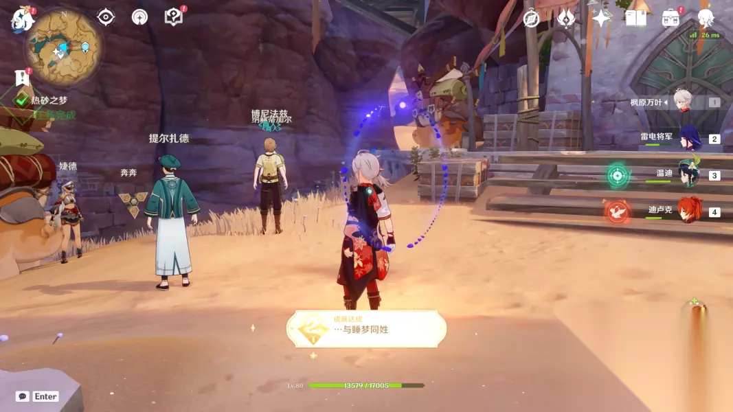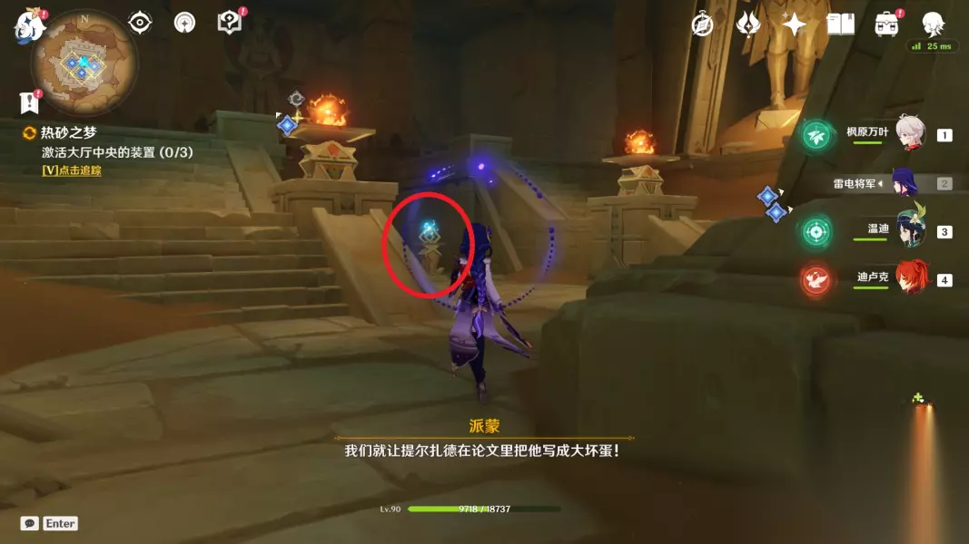 《原神》热砂之梦任务攻略 〓建议先将沙漠的地图点亮后进行任务〓 ※如果遇到图片不清晰或者糊的情况,建议下载原图查看。 前置任务 【V3.1攻略】#任务攻略#「沙漠书」黄金梦乡-沙海迷踪 【V3.1攻略】#任务攻略#「沙漠书」黄金梦乡室内派考古入门 【V3.1攻略】#任务攻略#「沙漠书」黄金梦乡阿赫玛尔的秘密 黄金梦乡-热砂之梦 1、返回绿洲,击败镀金旅团