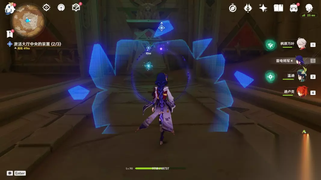 12、激活大厅中央的装置(0/3) 跟随三处机关前的元能火种即可