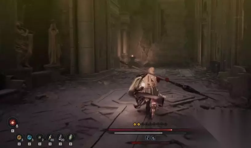 1、敌人: 疯狂野兽、精英堕落高阶牧师、堕落者、妖魔追击者、妖魔小丑、妖魔萨满 2、重要物品: 不稳定的灵魂裂石 你进入大门之后,左侧和右侧各有一只疯狂野兽,中间是精英堕落高阶牧师。显然,你需要单独击败这些疯狂野兽。清除它们后,你会在右上角找到一块地球增强器,在右下角找到两个转化迷雾。现在,拉下上方的杠杆。 >>第一颗灵魂石 向下走到基座层,会看到一组楼梯通往下方。右边有一把梯子,但你应该向左走,爬上一组楼梯,面对着一颗灵魂石(1/4)。现在,返回楼梯,爬上梯子。 从梯子上走下去,跳过左边的间隙,击败三个堕落者。拾取不稳定的灵魂撕裂石,穿过墙上的洞口,你将回到大教堂,继续爬上梯子。现在,穿过墙上的洞口,你将遭遇一位狂暴的妖魔追踪者,同时在横梁上行走时会遇到另外两个妖魔追踪者。如果你有精神点数,可以用标枪击败它们。你将找到一个火灵之燃料和一个宝箱,里面有荣耀之矛、辉煌守护者头盔、牧师戒指和火焰增强器。 >>第二颗灵魂石 穿过墙上的洞口,走到对面的小平台上的浮动楼梯下去。不要拖延,因为楼梯会在你脚下崩塌。跳下到下面的阳台。现在,踩下按钮启动电梯,然后通过你刚刚进入的入口离开。沿着走廊走,你将面对第二颗灵魂石(2/4)。上楼后,你可以拾取不稳定的灵魂撕裂石。 回到按钮上站好,爬上楼梯并绕行。你将进入一个没有敌人的大房间。你还会看到达芙罗娜也在这里…在与她交谈之前,先与堕落的休息室之刃核心互动。 三:堕落休息室 1、敌人: 疯狂野兽、精英堕落高级牧师、堕落者、妖魔追踪者、妖魔小丑、妖魔萨满、信徒 2、重要物品 不稳定的灵魂撕裂石 如所述,这里没有敌人需要对付,也没有隐藏的秘密。从你进入休息室的地方,如果你向左走,你会在后面的房间里找到一个尸体,旁边有一个不稳定的灵魂撕裂石。之后,这里唯一要做的就是和达芙罗娜交谈。 如果你不确定自己是否满足获得最佳结局的要求,请不要急着与达芙罗娜交谈——如果你在意的话。 与达芙罗娜对话 根据你已完成的条件,你将能够选择你的结局。你的选择有: 我将复仇。——这会让你获得最基础的结局。与奥兹玛的战斗中,他将有两种形态。 我想和他谈谈。——这会让你获得“链条”结局。与奥兹玛的战斗中,他将有三种形态。 我必须知道真相。——这会让你获得最佳结局。与奥兹玛的战斗中,他将有三种形态。 选择好结局后,当你准备好继续前进时,爬上休息室中央的楼梯。你将进入一个图书馆。这里有五个萨满,四个追踪者和三个小丑。此外,所有追踪者都是狂暴的。 先击败左侧的两个萨满和一个小丑,然后走到入口的右侧。你将在这个后角与一对萨满和一对小丑交战。探索这里的角落,你会发现一本可疑的书,打开后会进入一个秘密区域,里面有两个化石化的乌乌。 现在,爬上楼梯,穿越带轮子的楼梯进入下一个区域。右侧有一个萨满和一个追踪者,击败它们后,你会发现一个大型精神矿石,摆放在书架前。继续从房间左侧的出口离开(沿着地上的血迹走),你会看到一个追踪者正在左侧的一具尸体旁抓挠。在偷偷接近他们之前,先击败右侧的萨满。他们会被书架遮掩。击败后,你可以拾取不稳定的灵魂撕裂石。 >>第三颗灵魂石 在下一层,你将遇到两个萨满和两个追踪者:清除它们后,继续向上爬。到达下一层后,右转,但在到达拐角前,看左侧的栏杆被打破的地方。第三颗灵魂石(3/4)就坐落在柱子上。小心,门口左侧有一个扭曲法师,准备伏击你。 你将进入一个螺旋楼梯的区域。如果你下去,你会发现七颗精神球。上去后,击败萨满,并拿到圆形房间内的两个内在精华。 进入阳台,击败追踪者,然后沿着螺旋楼梯向上走,继续沿着走廊前进。小心,门口上方藏着一个信徒。打开宝箱,你将得到黄金双持、十字军上衣、牧师戒指和火灵之燃料。离开房间的角落,你将能够激活皇宫花园之刃核心。 四:皇宫花园