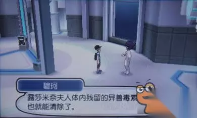 在B2研究室见到了碧珂,告诉主角露莎米奈在与虚吾伊德合体时神经毒素的副作用使她很虚弱,莉莉艾听说关都地区的正辉也许能够清除露莎米体内残留的异兽毒素,于是和母亲一起去了关都治病。碧珂给了2个大马拉萨达后去研究室B了。