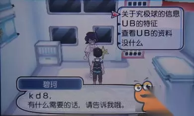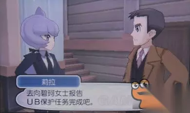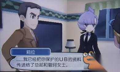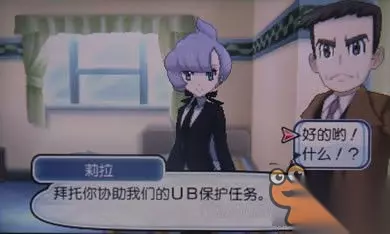 飞往阿卡拉岛8号道路,在路尚汽车旅馆见到俩国际警察帅哥和莉拉,上来就直接审问主角是否与UB寄生物有过接触,例如虚吾伊德…实话实说,打败过!然后就是机密对话,国际警察组织在调查UB,防范人类遭到危险,要把UB捕获或消灭,并邀请主角帮忙。同意后与莉拉(LV61胡地,LV61玛狃拉,LV61梦妖魔,LV61卡比兽,LV61暴飞龙)对战,胜利后受(jia)雇(ru)国际警察组织==b。