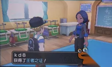 在美乐美乐岛的训练家学校,在3楼左侧与30年没毕业的空手道大叔(LV55火暴猴,LV56路卡利欧)对战,获胜后进屋可以挑战校长菲奥娜(LV57布鲁皇,LV57风速狗,LV57长毛狗),获胜得到王者之证。(注意教室的黑板,战斗中和剧情中的不一样哦,算穿帮么?)