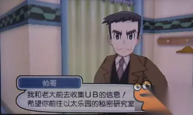 到达汽车旅馆,屋外发现基格尔德细胞,屋内见到莉拉和默丹,得知两只UB膨胀已经出现在美乐美乐岛,帅哥赶来证实了消息。帅哥给了主角10个究极球,并告知虚吾伊德的资料分析已经结束,可以到以太乐园向碧珂了解。