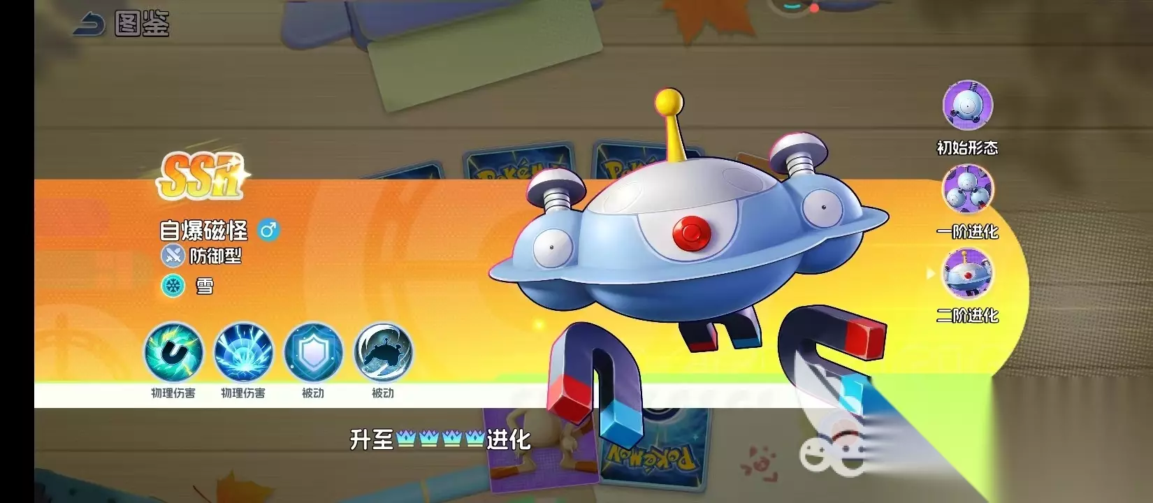 初始的状态就是小磁怪,这就是最不起眼的存在,主要是以单颗磁星作为核心。作为防御型的宝可梦,虽然看上去有一些单薄,但是这个时候就好像是成为了哨兵。用微弱的磁力感知着周围的能量流动,最终就会等待着破茧成蝶的时刻。