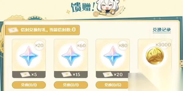 4、最后玩家可以根据所获得信封,在活动页面,兑换相应的原石奖励。
