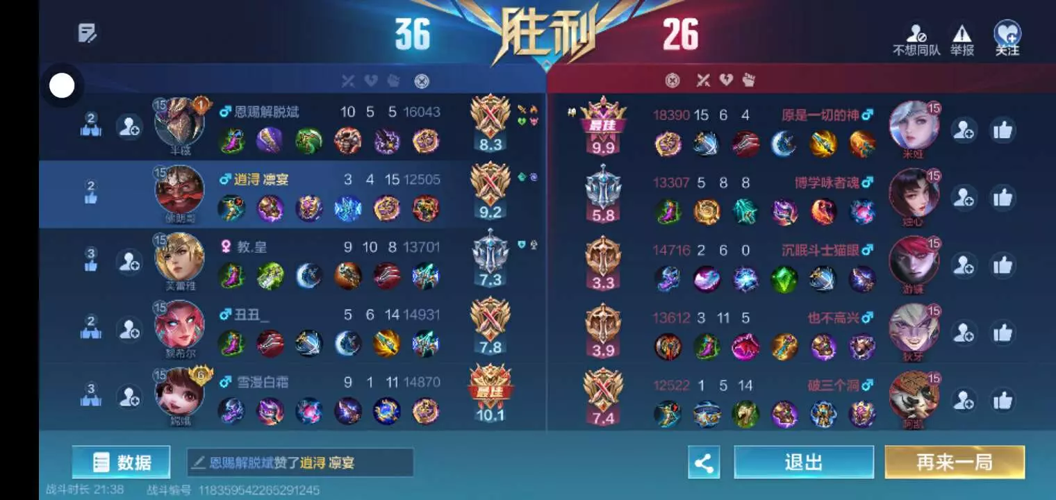 那个时候,我和射手在金币路,对面狄牙他走的是金币路,然后当时对面的法师烛心过来了,然后我们就打起来了。然后对面烛心被射手击败了,射手被对面狄牙击败了,然后我就想给射手报仇,奈何我打不过狄牙,只能瞬移到防御塔了,当时我只有一点点血了,对面的狄牙太贪得无厌了,己经击败了一个人,还想着也击败我,所以我在赌,赌他会不会闯防御塔,幸亏我赌对了,他闯进了防御塔,我立马把他困住了,然后击败了他。千万不要贪得无厌。