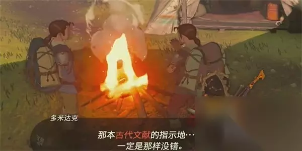 2、我们到达目的地之后,与多米达克他们进行对话,在对话中获取到宝藏的位置。