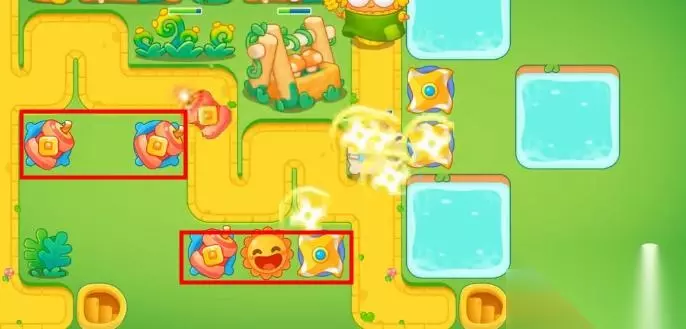 4,后面障碍物清理掉后,玩家是需要小心怪物中是有可以将我方炮台冻结的能力。