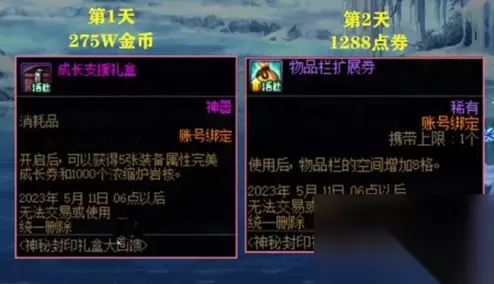 DNF神秘封印礼盒有什么?dnf中的神秘封印礼盒活动算是一个长期活动了,玩家可以领取到十分丰厚的奖励,很多玩家好奇游戏中的神秘封印礼盒中包含了什么奖励。今天小编就给大家带来DNF神秘封印礼盒奖励介绍。 DNF神秘封印礼盒有什么 第一天奖励:成长支援礼盒 275w金币解锁 第二天奖励:物品扩展券 1288点卷来解锁