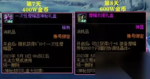 第七天奖励:一次性增幅器神秘礼盒 400w金币解锁 第八天奖励:增幅支援礼盒 600w金币解锁
