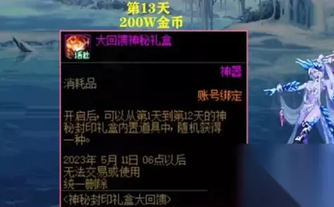 第十三天奖励:大回馈神秘礼盒 200w金币解锁