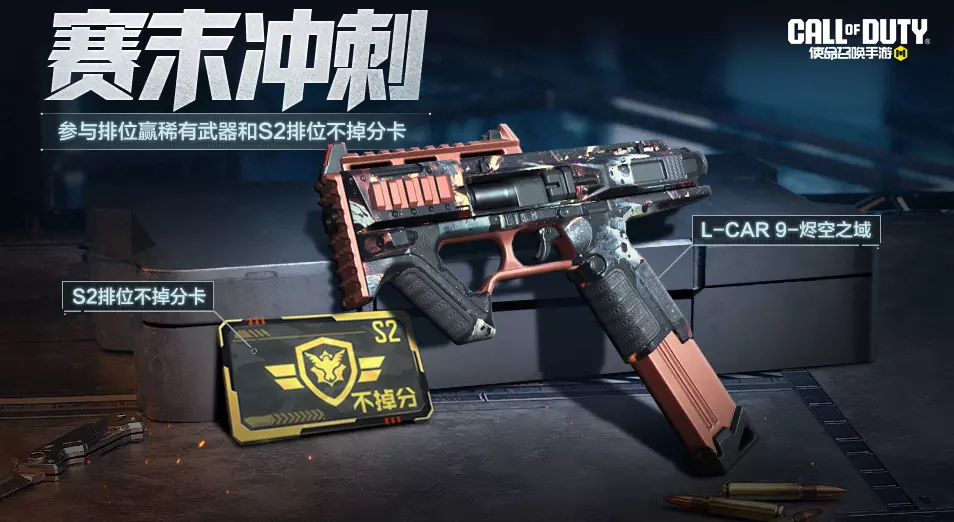 又到了赛末冲分的时刻了,瘦普也带来了赛末冲刺活动。7月25日(本周五),战士们参与游戏对局,即可获得稀有级武器L-CAR 9-烬空之域、S2排位不掉分卡。