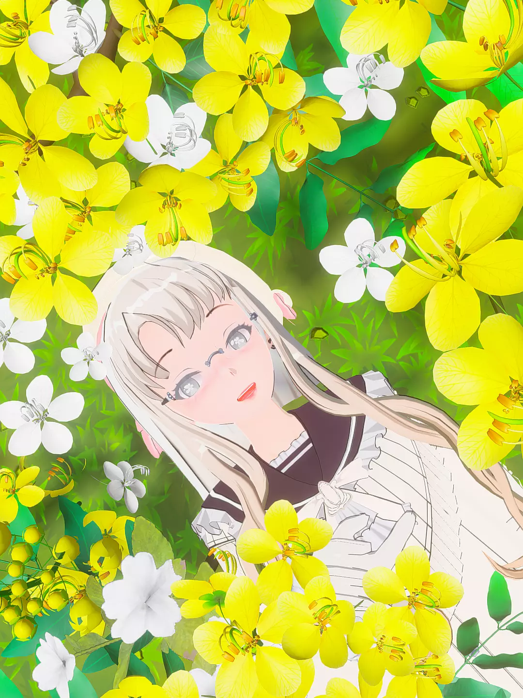 和花朵合影