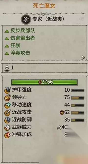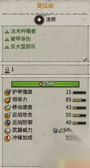 狂暴的伤害输出者。 在领导力高时伤害更高,需要严密保护。 依靠各种buff和伤害魔法,可以很有效的消灭敌方部队,尤其是敌人的步兵单位。