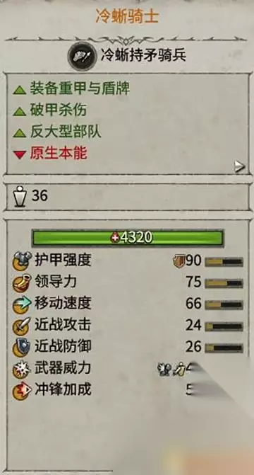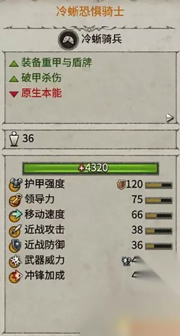 冷蜥骑士机动性叫普通骑手差,但是防御能力超强。 对抗大型和重甲单位时能力出众。 如果缺乏领导和支援,容易逃离战场。