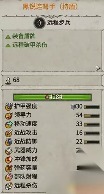 损失了部分近战攻击力(影响很小)换来了更强的远程防护力。 让连弩手可以更好的对付敌方的远程,尤其是重甲远程部队。