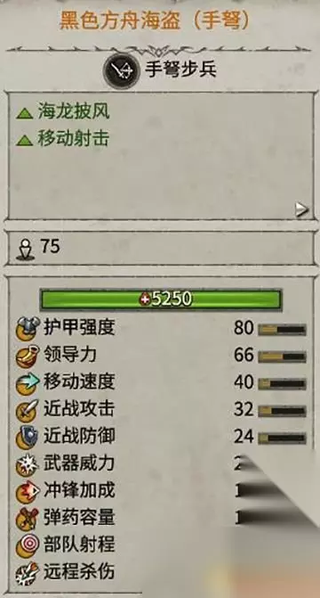 牺牲了部分近战能力,换取了距离有限的远程能力。 总体来说让海盗更加的灵活,可以对付敌人速度很高的步兵单位。