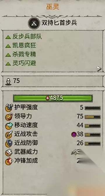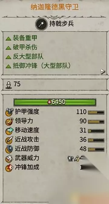 和刽子手作用类似,不过在对抗大型、冲锋和重甲兵种时更有效。 本身免疫恐惧、惊骇效果,稳固阵线,保护后排的能力更强。