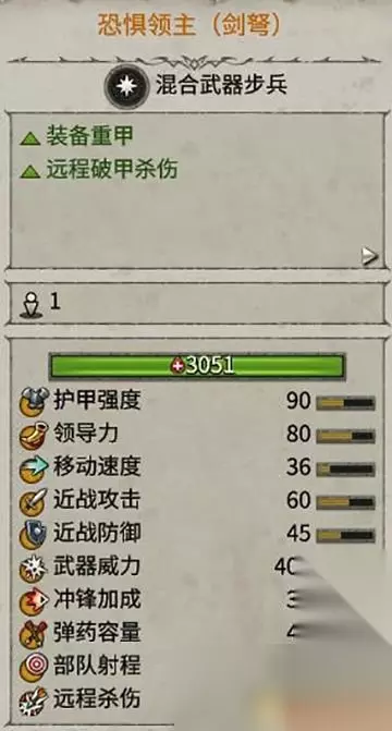 进一步强化了领主的防御能力,但是取消了远程能力。 依靠带领近战部队进行作战,对近战、冲锋接战都有很强的加成效果。 是绞肉作战的强大力量。
