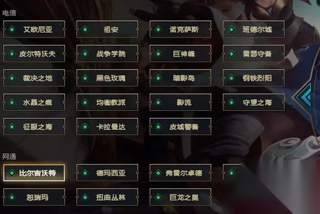 在英雄联盟这款游戏中,1区有两个,分别是艾欧尼亚和比尔吉沃特。艾欧尼亚是电信一区,比尔吉沃特是网通一区。玩家们为了区分电信一区和网通一区,将艾欧尼亚称为电一,将比尔吉沃特称为网一。