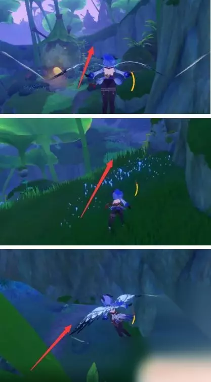 2、然后我们需要面朝锚点方向向右侧移动,如图所示。 3、然后我们一路直行看到牵引点就牵引过去,如图所示。