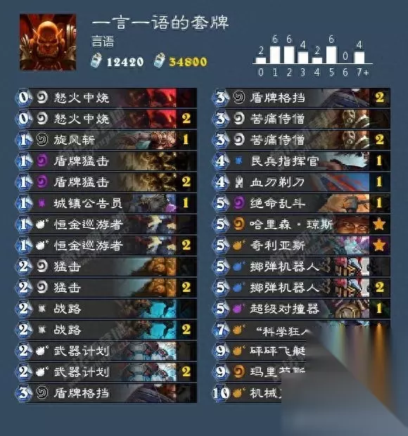 由于战士的苟活能力极强,卡组中也有不少的aoe(战路,乱斗等)和叠甲卡,所以拖到后期也是比较容易的,当然在苟活的同时,过牌也是非常重要的,能早一回合发动,我们的胜算就越大,大家有兴趣的话,可以来试试这套卡组。欢迎大家关注和分享,每天给大家带来炉石传说的消息心得福利和环境强势卡组及技巧哦。