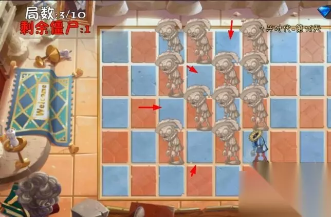 16、局数8隐藏僵尸的位置如下,