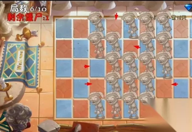6、局数2隐藏僵尸的位置如下,