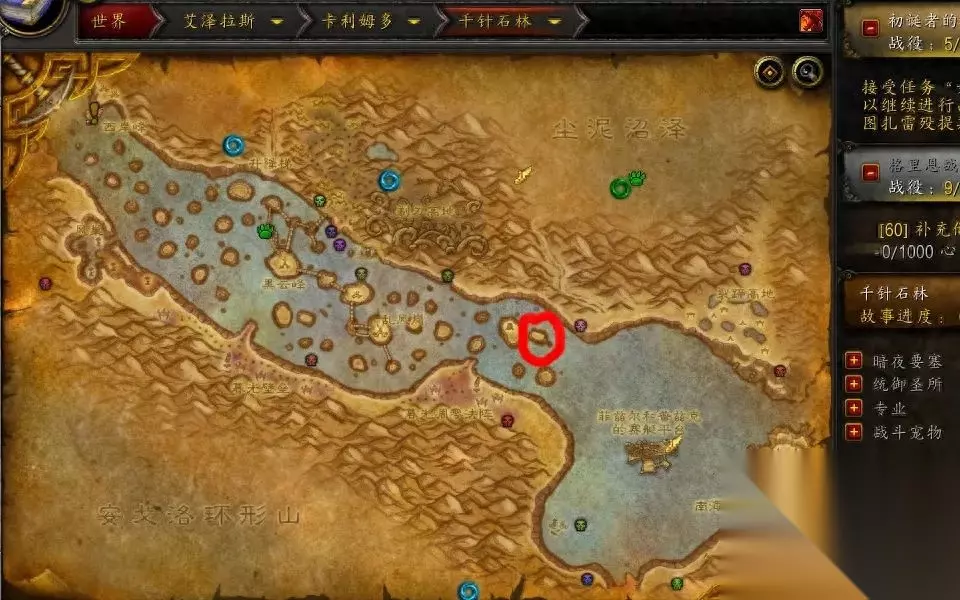 恶魔符文 锻造和裁缝需要。厄运东走南门打萨特。恶魔布也可以刷它们。注意这玩意拾取绑定。 生命精华 厄运东打花和树人。 龟壳 扒皮掉率最高且最密的乌龟在千针石林的一个小岛上。下图圈里那个。
