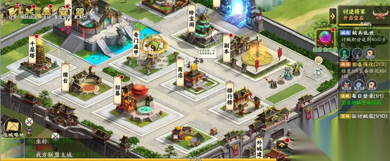 说到战法搭配,建议给于禁带上高发动几率的物理战法,这样才能充分发挥他武力值加成的优势。破阵摧坚、所向披靡、轻勇飞燕、落凤这些战法都是不错的选择,特别是所向披靡这种强力群体输出战法,配合于禁的武力加成能打出爆炸伤害。如果想让于禁更专注于输出,可以考虑带破阵催坚这种既能造成伤害又能降低敌方属性的战法,或者暗潮涌动这种专门针对敌方主将的战法。