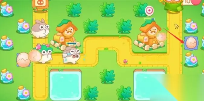 5.在如图所示位置放置一个毒针塔,毒针塔能暂时减速附近的兔子,配合大鸡蛋和魔法球可以对敌方兔子造成大量伤害