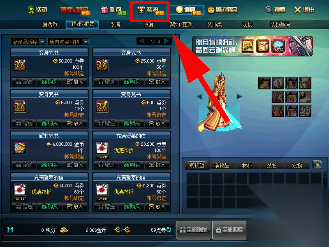 染色剂是跟装扮有关的道具,但是在道具中没有出售,需要进入装扮页面购买,点击装扮页面。