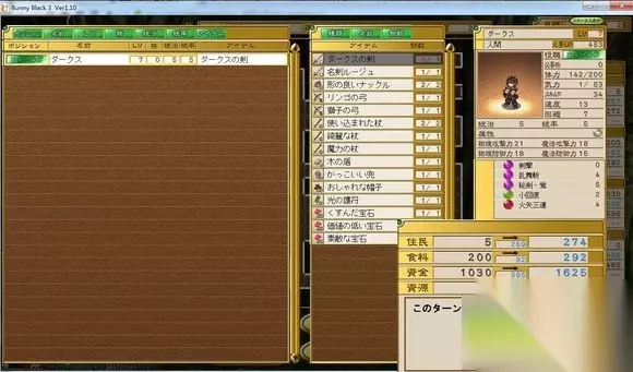 BunnyBlack3一周目第二回合怎么过;BunnyBlack3一周目第二回合攻略; 第二回合达哥发现没人来加盟,照这个速度开拓领铁定完蛋,在某商会的建议下,跑迷宫用说(殴)服(打)的方式说服原住民加盟……当然,顺便采集点食物收集点资源捡点钱。于是达哥孤身一人向千树庭出发。 千树庭的特点是地方大,资源点多但是平均量少,人多食料少。若是收集一堆人口很容易闹饥荒……总之第二回合就在里面晃悠吧。目标达哥7级走2000步。为喵要2000步呢?因为商会出加气力的服务大概需要5000步和4次探索。出了加气力的,SP才能派上大用场。 由于只有达哥一人,初始迷宫也相当危险,就算装上新手神器达克斯的剑一刀也只能砍死史莱姆,大部分要两刀,跳来跳去的植物要三刀。所以捡完初始第一张图之后耐着性子转圈就好,躲着红点专杀只有一两个怪的暗雷就好。全部的气力都花在小回复上,2气力加约40血。效率比乱舞斩火三连不知道高到哪去了。 当然,喜欢拼一下达哥的逃跑艺术的话可以撞暗门往左走,一路逃跑捡资源最后从最深处(有个宝箱可刷出大首饰)溜暗门回来。这么一来能多点资源,不过我SL了大概五十多次才活着回来……顺带一提,自动存档选得好,就算有我方单位脱队,只要及时把BB3程序一关,就可以读自动存档了。 具体收获如下: