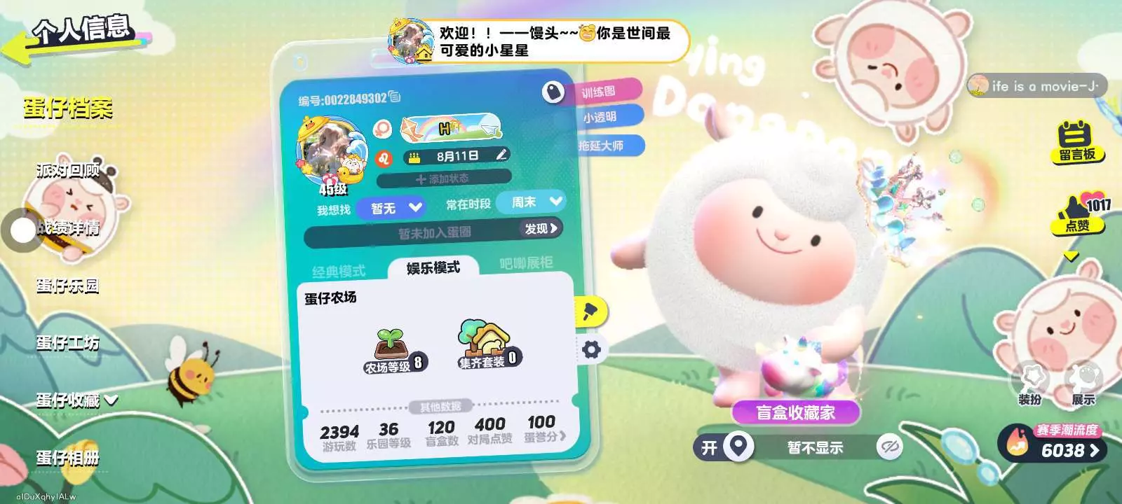 蛋仔名:H蓒 蛋仔号:0022849302