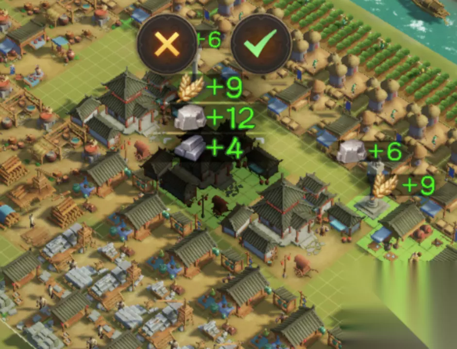 其加分规则为: 覆盖相关的二级建筑、三级建筑、五级建筑则加分。 例如食肆覆盖米铺、***加分。同时五级建筑为会市,所有的四级建筑覆盖都会加分。 但是,主公需要注意,覆盖范围内若有同类四级建筑,可是会减分的!