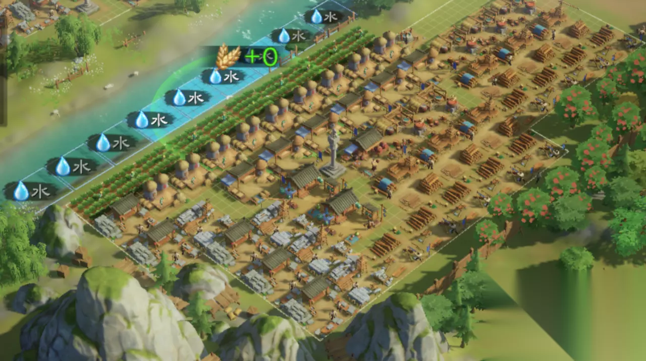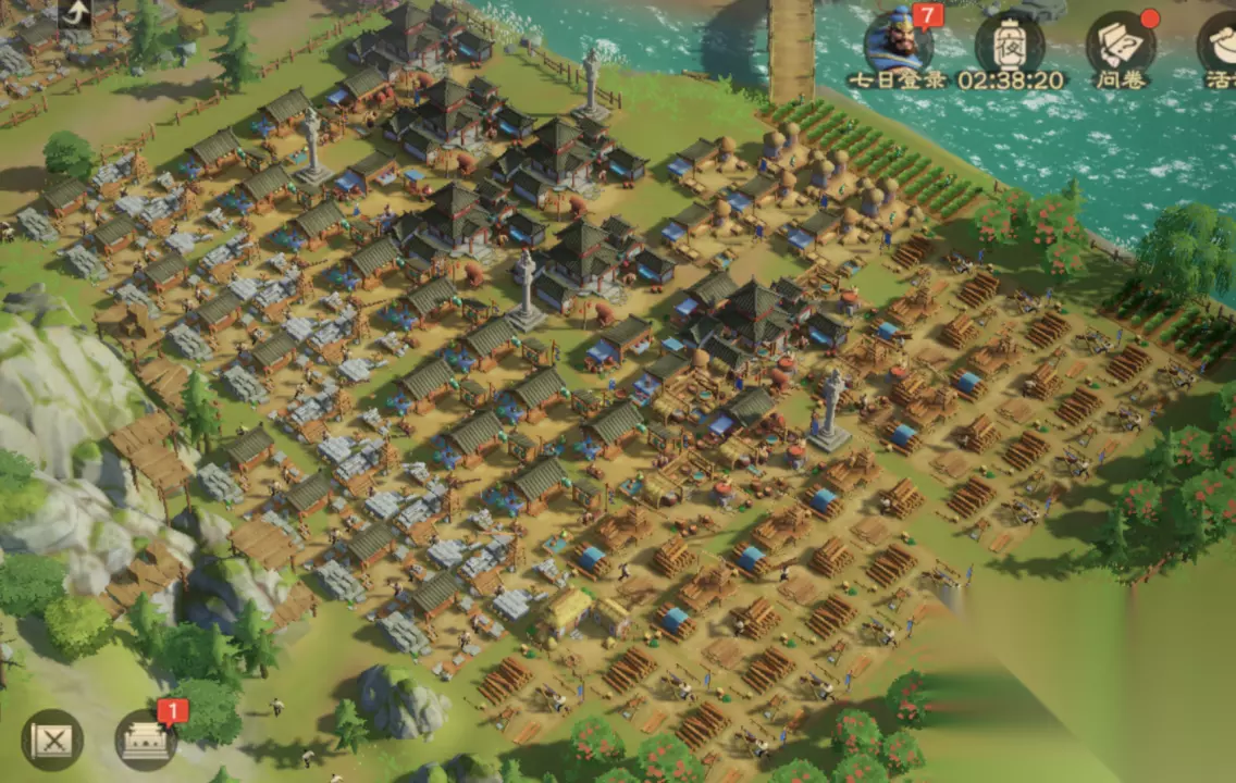 封地四:乐游苑 该封地拥有三种自然资源,依然是对应的自然资源上布置田庄、伐木场,凿石场。最后向内布置各级建筑。