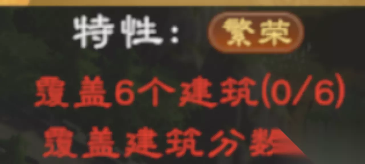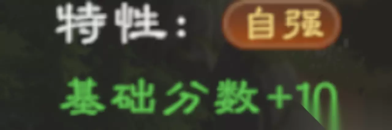 特性:自强 强力通用特性,直接+10分,任意情况通用,最好用于周围建筑较少单独存在时。