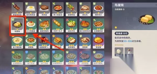 9、选择鸟蛋烧食谱,还需要准备糖。