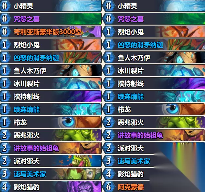 再则这卡组没有强到值得你合很多卡,此外这卡组也是随从构成且体系杂乱、法术稀少、节奏迅捷。起手留牌要随机应变,只要能保证前期进攻性即可。