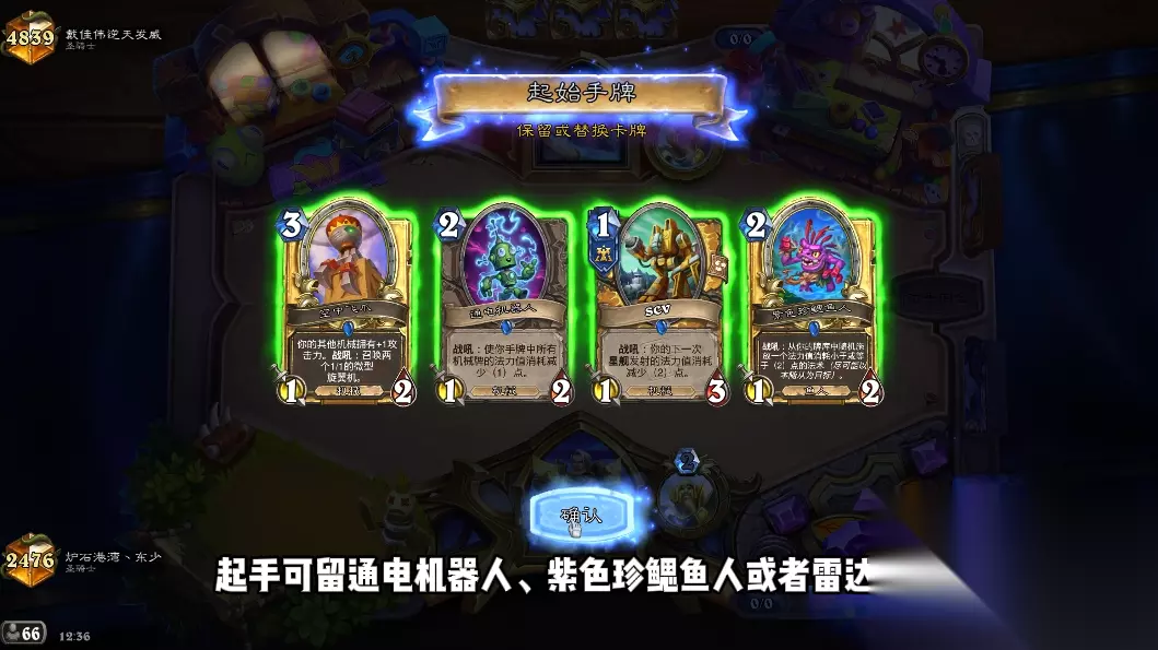 机械骑胜率很高,但热度非常低,东少我起手就是一波7连胜。机械骑是一个非常极致的铺场快攻!起手可留通电机器人、紫色珍鳃鱼人或者雷达探测。