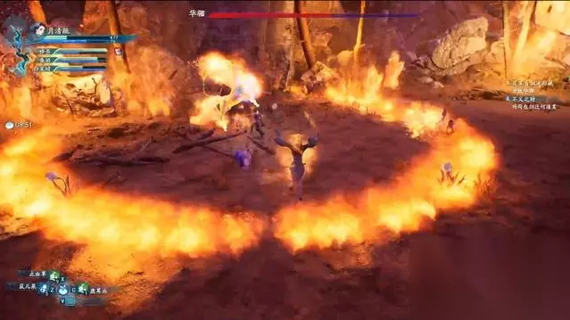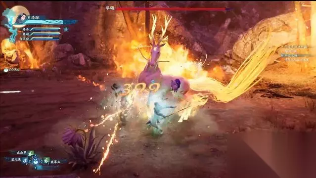 但见到桑游手上的伤口后,华骝突然凶性发作,攻击众人。 BOSS打法如下: 1 、按G键使用召神之术,短时间内无敌并大幅提升攻击力。 2 、BOSS的多数攻击均有一个明显的抬起前蹄的动作,见到后迅速往旁边闪避。 3 、BOSS的大多数攻击只能打到正前方或正后方的一小块范围,在它侧面输出会很安全。 4 、攻击场景中的迷花,可使BOSS暂时无法动弹。