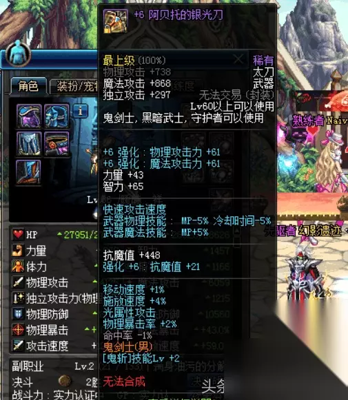 鬼泣的手上有一把异界太刀,这把太刀没有等级,也没有“精”字,这是老版本异界地下城所掉落的装备,恐怕很多人都不知道,还有这异界装备。