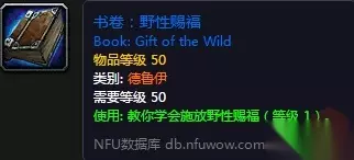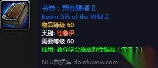 技能:野性赐福 掉落自:50级以上的团队副本或地下城 ,自1阶段开始掉落。 书籍:野性赐福 II