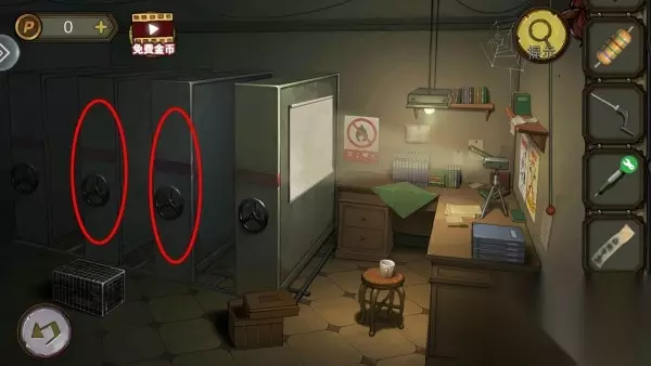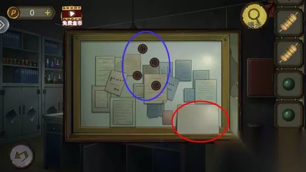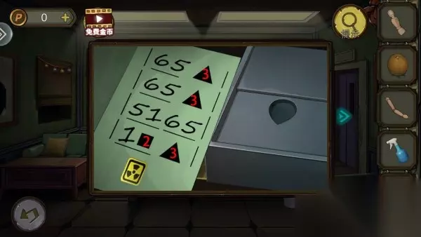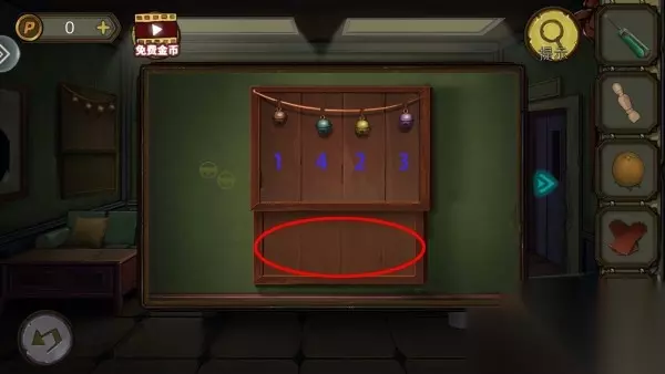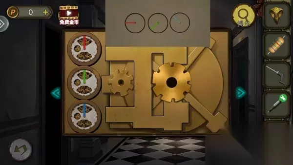 31、根据毛玻璃上图片,打开柜子,拿齿轮。柜子解谜思路:柜子上颜色上下一对,找图片中对应位置顺序。密码:8653。