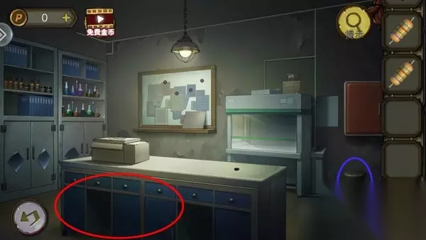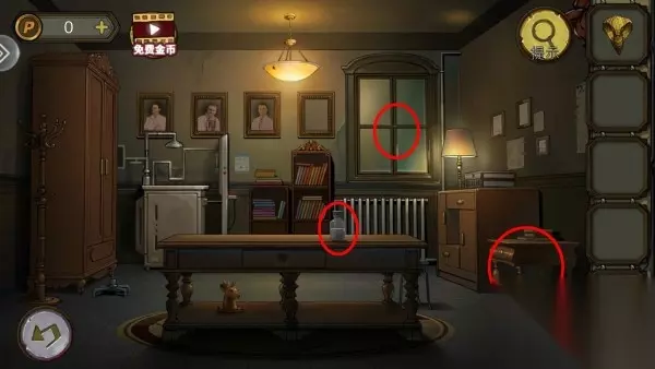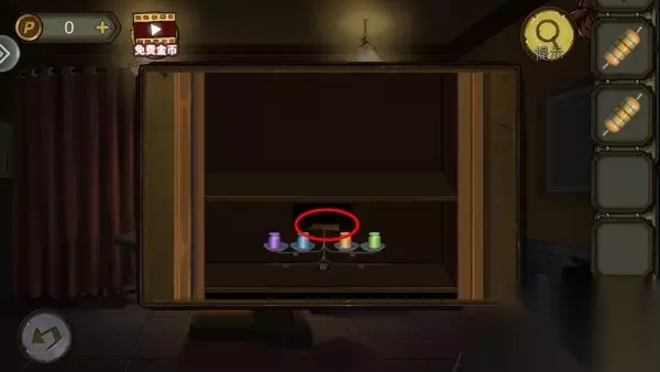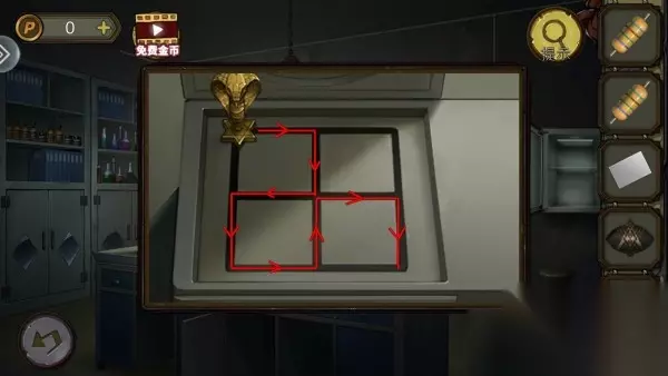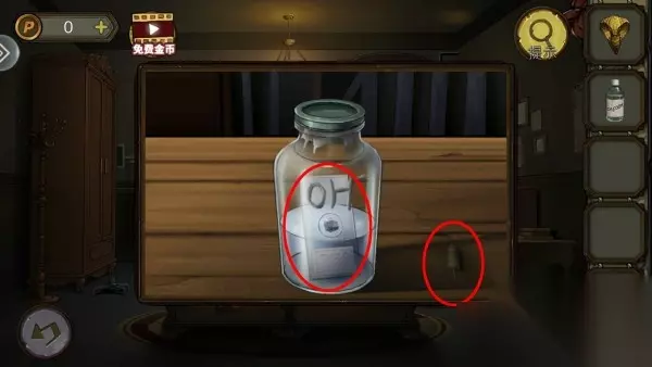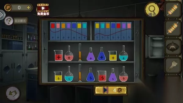 67、柜子上把书和药水排好,出现隐藏门钥匙开门。