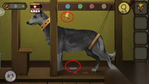 19、通过破铃铛拿铜舌,铜舌装铃铛上,点下铃铛,拿狗下面钉子。